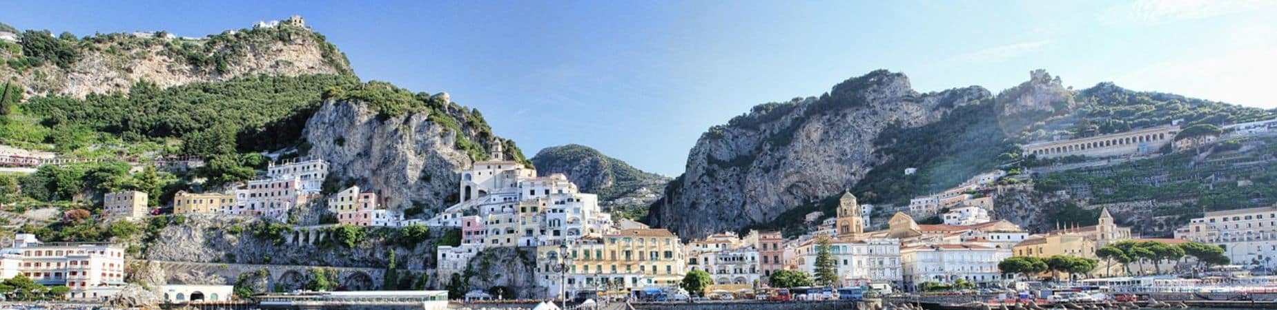 La côte Amalfitaine avec le charme des villages accrochés à flanc de colline tels des perles scintillantes dans les eaux cristallines de la mer Tyrrhénienne.